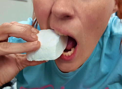 These are HARD chunks- they are not made in the same 3x5 press that the pure bricks are made in. They are under 12 tons of pressure and heated directly at 400 degrees- not teeth breakers, but def hard!!